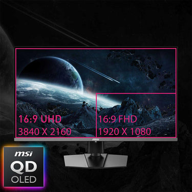 - MPG 272URX QD-OLED Flat Gaming Monitor; Metallic Black - RGB; 27" screen; QD-OLED Panel; 3840 x 2160 (UHD) Resolution; Adaptive Sync, True Black HDR 400; Glare with narrow bezel; 240Hz Refresh Rate; Tilt, Swivel, Height and Pivot Adjustable