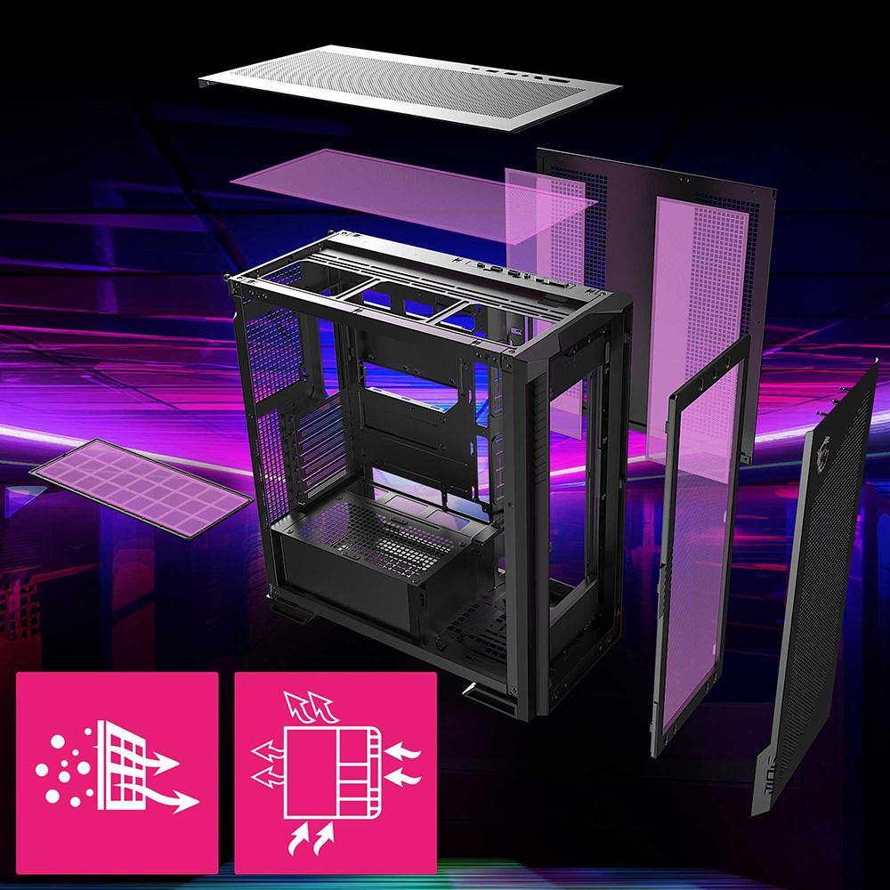 - MPG VELOX 300R AIRFLOW PZ, Global, 2xUSB 3.2 Gen 1, 1xUSB 3.2 Gen2 Type-C, 2x160mm ARGB Fan, 1x120mm Non-ARGB Fan, ARGB+PWM Control Board, Tempered Glass Window, Brown Box
