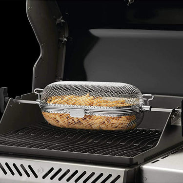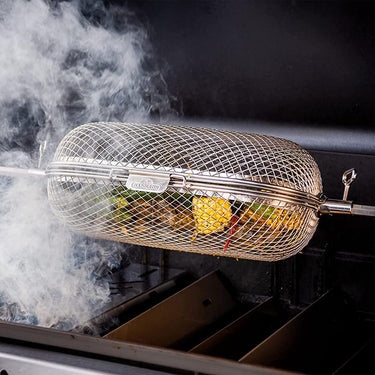 The rotisserie action ensures even cooking on all sides while gently tumbling the delicious contents over your cooking grids.
