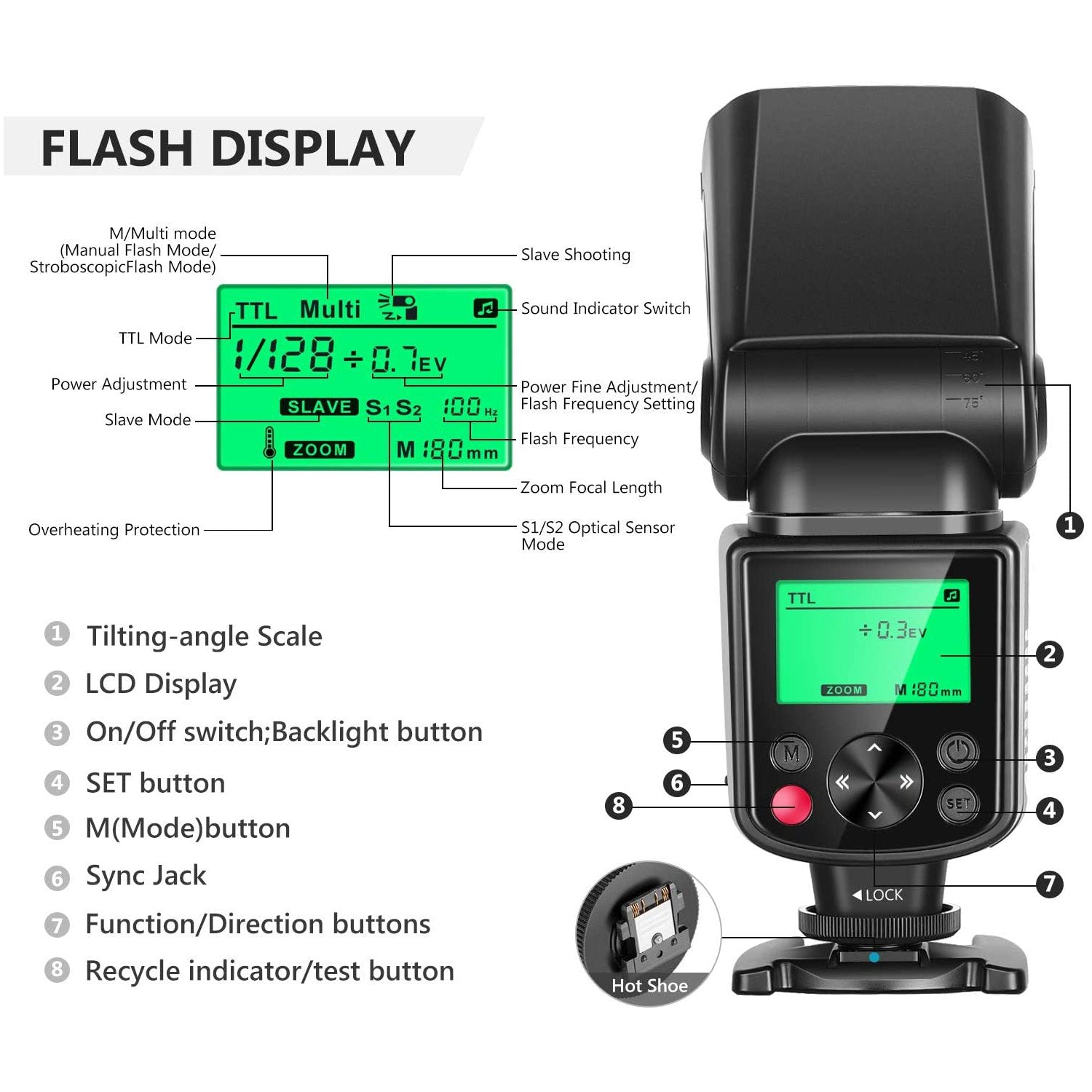 Neewer NW635 TTL GN58 Flash Speedlite LCD Compatible Sony MI Hot Shoe Mirrorless Camera