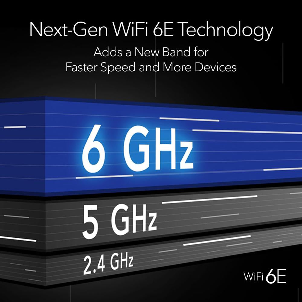Introducing WiFi 6E, delivering the smoothest and fastest streaming, eLearning, video conferencing, and gaming experience. Now you can have all the power of 6th-generation WiFi plus expanded speeds, connections, and capacity thanks to a completely new and wider 6GHz WiFi band with more WiFi channels.