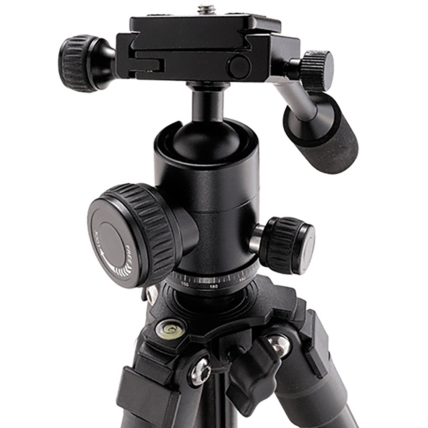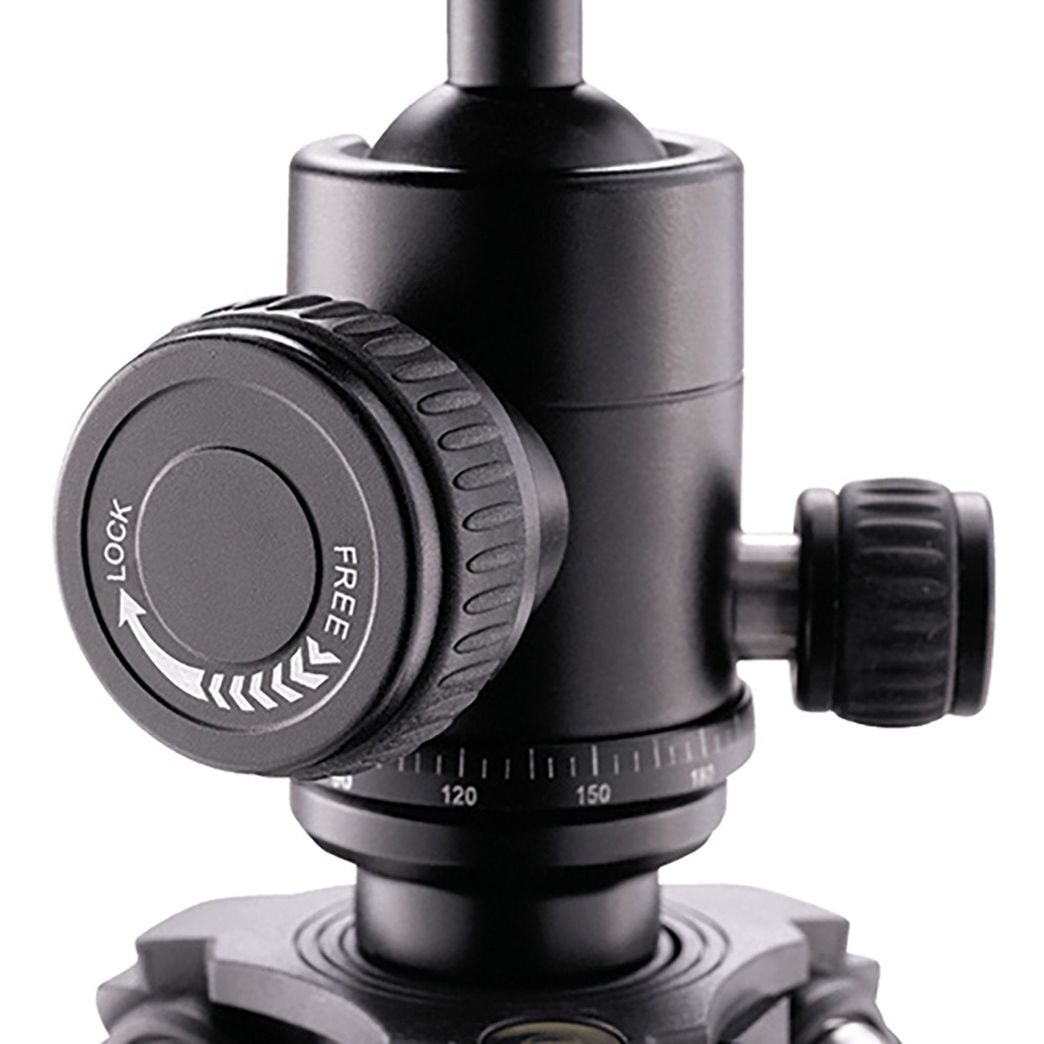 Fully adjustable 360-degree rotating aluminum ball head features quick release plate that locks optic into position as needed. Features clearly marked rotation indicator graduations.