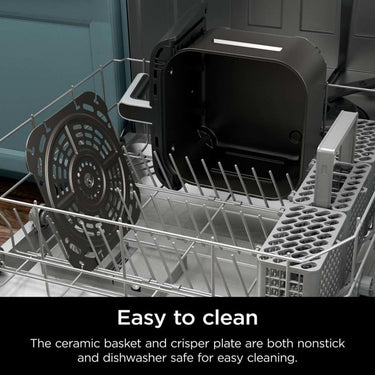 The basket and crisper plate are both nonstick and dishwasher safe for easy cleaning.