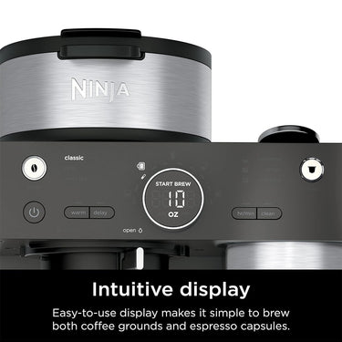 The Ninja Espresso & Coffee Barista System is a single-serve espresso system that brews coffee grounds in various sizes and styles, including Classic, Rich, and Over Ice. It features Barista Plus Technology for optimal temperature and pressure, ensuring a silky-smooth crema. The system also features a built-in, fold-away frother for creating coffeehouse drinks like cappuccinos and lattes.