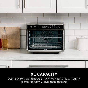 Meet the Ninja Foodi XL Pro Air Oven, the extra-large toaster oven and air fry oven with True Surround Convection. You get up to 10X the convection power of a traditional full-size convection oven, so you can make quick family meals on 2 levels, no rotating required. Plus, it features 10 cooking functions: Air Fry, Whole Roast, Air Roast, Bake, Dehydrate, Pizza, Broil, Toast, Bagel, and Reheat.