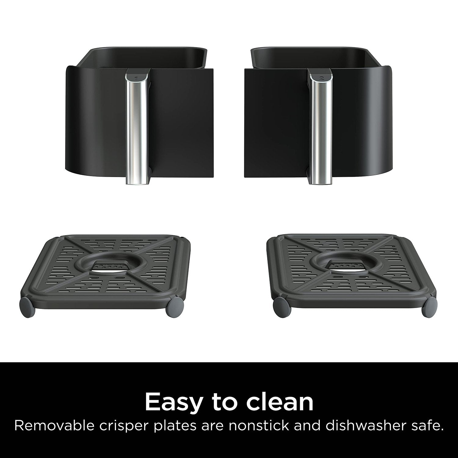 - Easy-to-clean baskets and dishwasher-safe crisper plates.