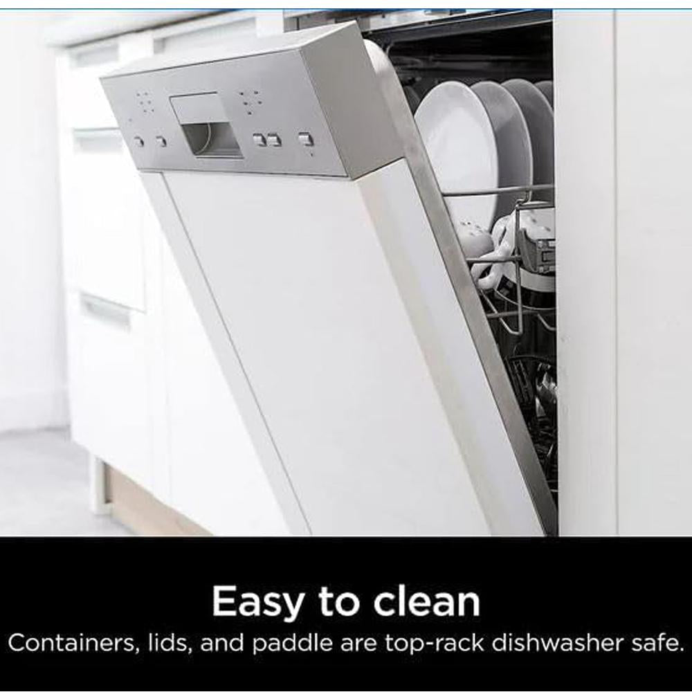 Containers, lids, and paddle are all top-rack dishwasher safe to make cleanup a breeze.