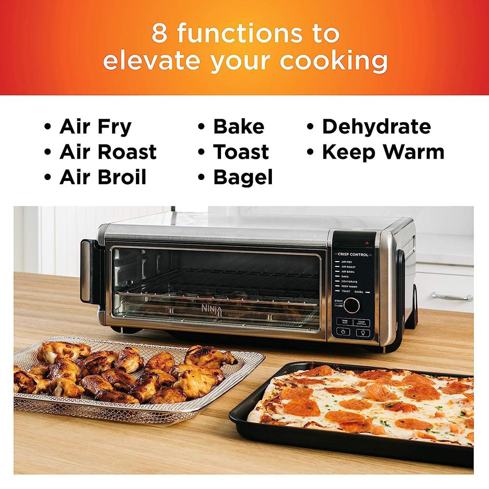 * The ultimate meal-making machine: Air Fry, Air Roast, Air Broil, Bake, Bagel, Toast, Dehydrate, and Keep Warm all in one powerful 1800-watt appliance.