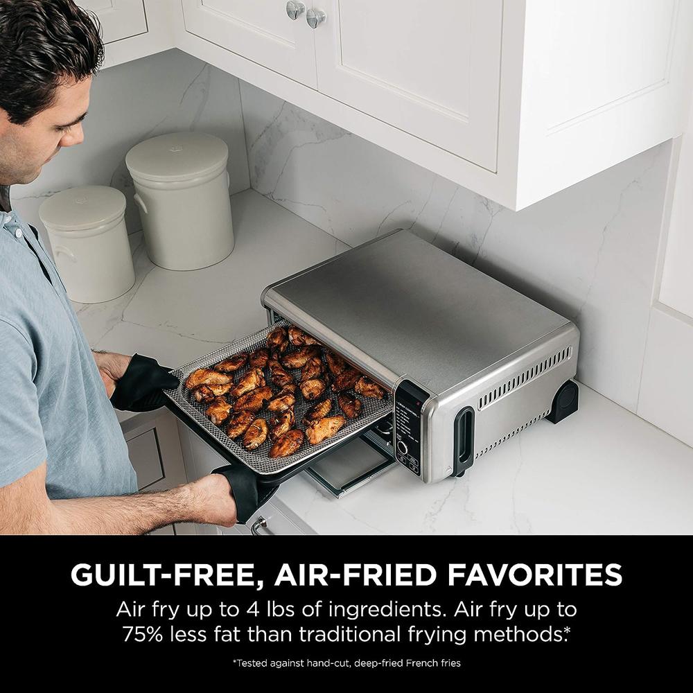 The Ninja® Foodi™ Digital Air Fry Oven packs a lot of features and cooking capacity in a small countertop footprint. Air Fry, Air Roast, Air Broil, Bake, Bagel, Toast, Dehydrate, and Keep Warm—all in one appliance—and when you're done cooking, reclaim your counter space by simply flipping the oven up and away to clean and store.