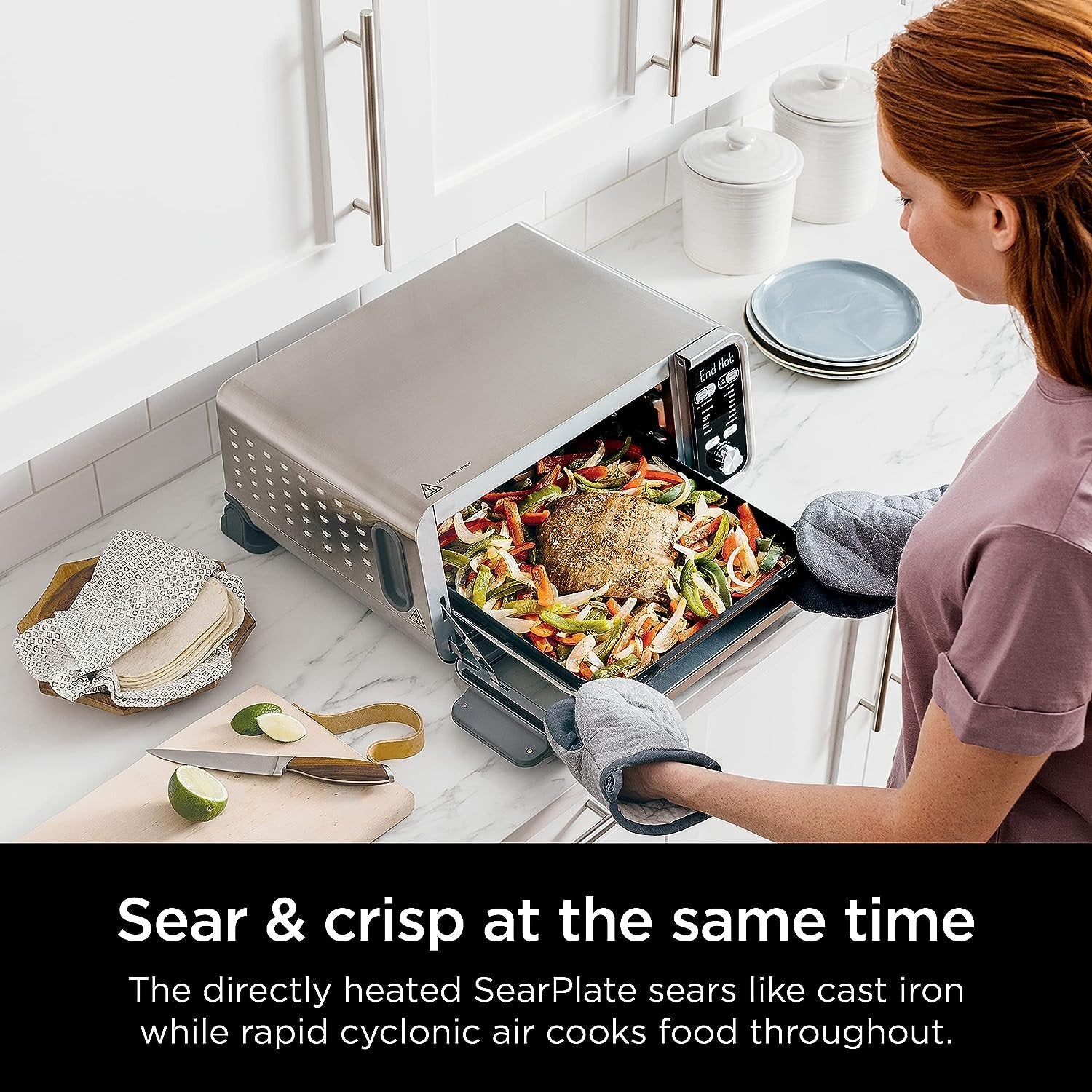 The Ninja Foodi Dual Heat Air Fry Oven gives you versatility in the kitchen with 13-in-1 functionality from Air Fry and Sear Crisp to Dehydrate and Reheat. With Dual Heat Technology, unlock up to 500°F cyclonic air and a directly heated SearPlate, which allow for fast cooking and restaurant-worthy results. Cook up your favorites and then flip the oven up and away to reclaim your counter space.