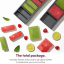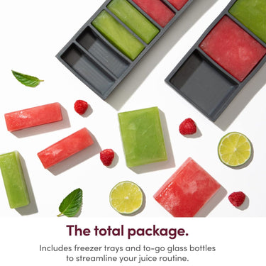 It’s easy to assemble and easy to clean, with a self-contained pulp basin, no-drip spout, and dishwasher safe components. It’s also equipped with a storage pitcher, freezer trays, and to-go glass bottles to streamline your juice routine.