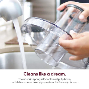 Designed for easy clean up: our self-contained pulp basin, no-drip spout and dishwasher-safe components take the chore out of juicing.