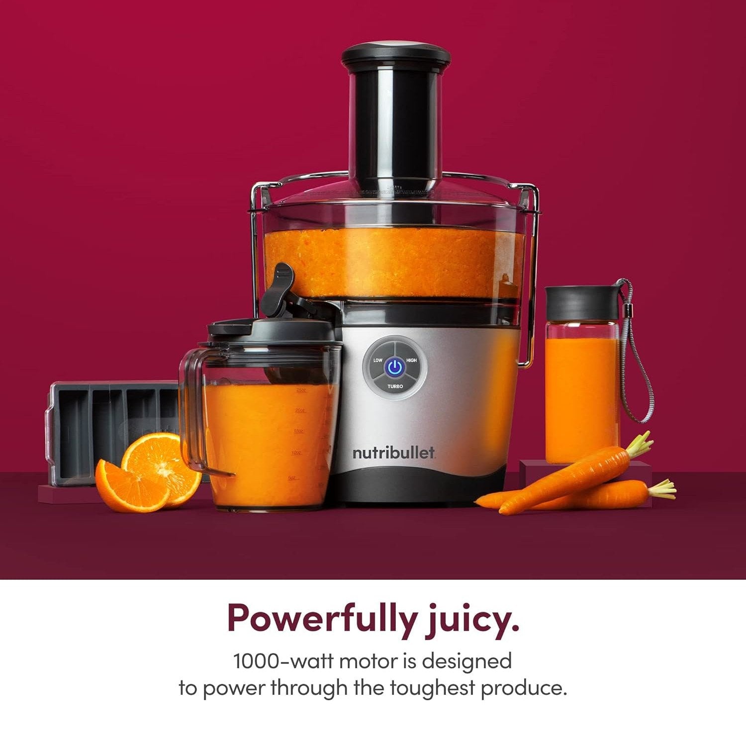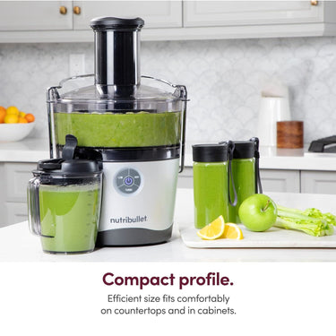 The nutribullet Juicer Pro delivers smooth, delicious juice from your favorite fruits and vegetables with three precision speeds, adjustable chute, and powerful 1000-Watt motor.