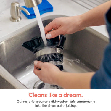 EASY TO CLEAN: Designed for easy clean up: our no-drip spout and dishwasher-safe components take the chore out of juicing.