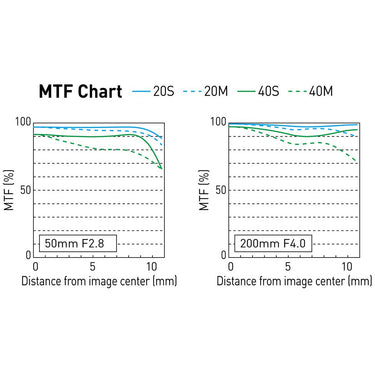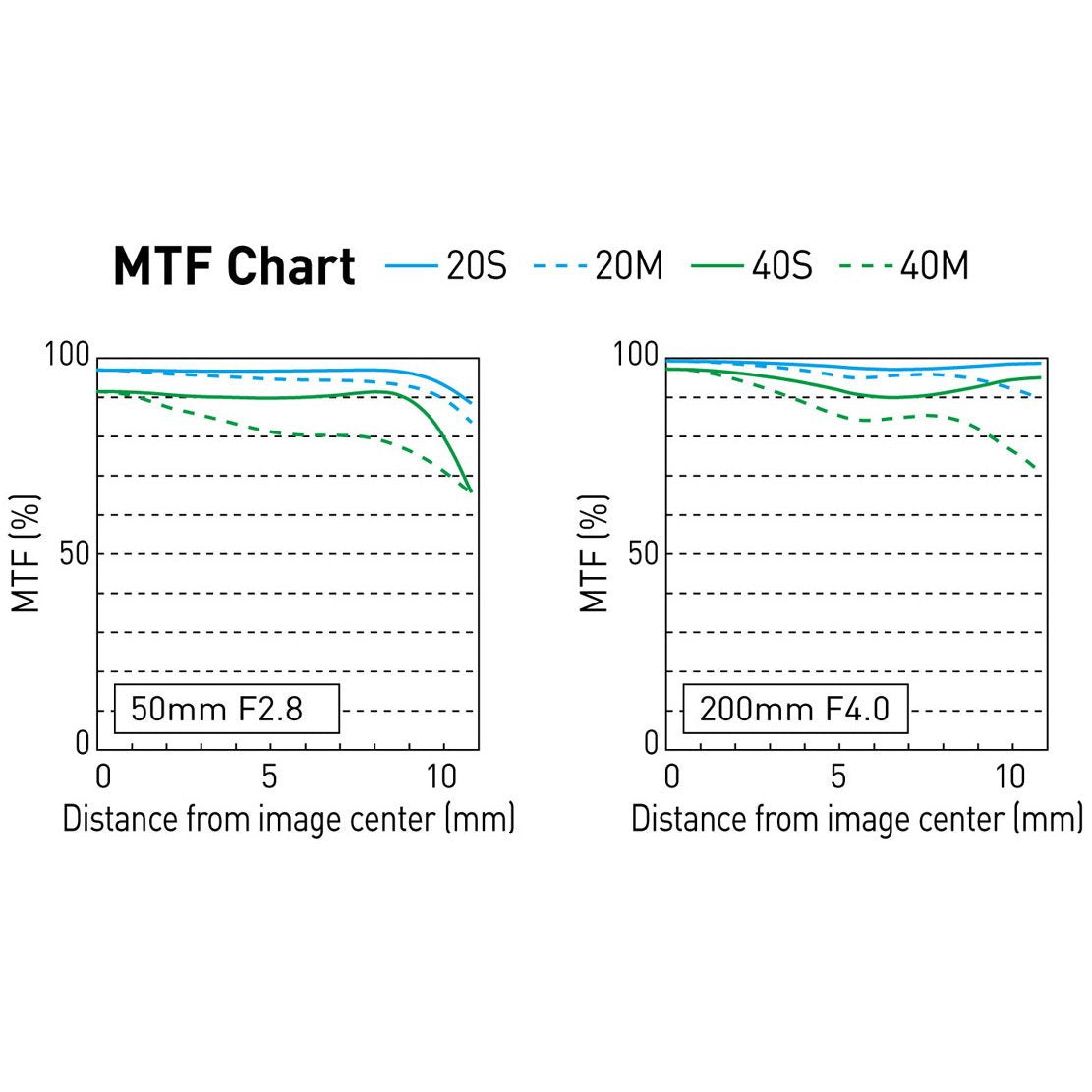 Excellent edge to edge sharpness for high quality zoom photography. For lenses that are capable of compensating distortion, the horizontal axis of the MTF shows the distance from the center of the corrected image.