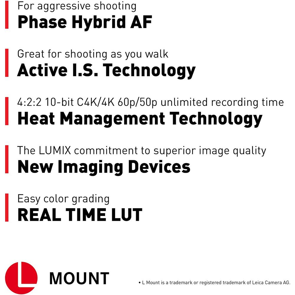 14+ stop V-Log/V-Gamut capture delivers a high dynamic range and broad colors, plus a REAL TIME LUT function is provided to enable in-camera photo and video color grading, with LUT6K 30p Open Gate unlimited recording.