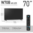 - Panasonic W70 Series 70 inch LED 4K Ultra HD Smart Fire TV