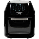 Super-heated turbo cyclonic air surrounds your food with crisp 360° air circulation to replace deep fryers, rotisserie, dehydrators, convection oven, oven toasters, and pizza grills. This 1700-watt air fryer oven will even fit a 4-pound chicken!