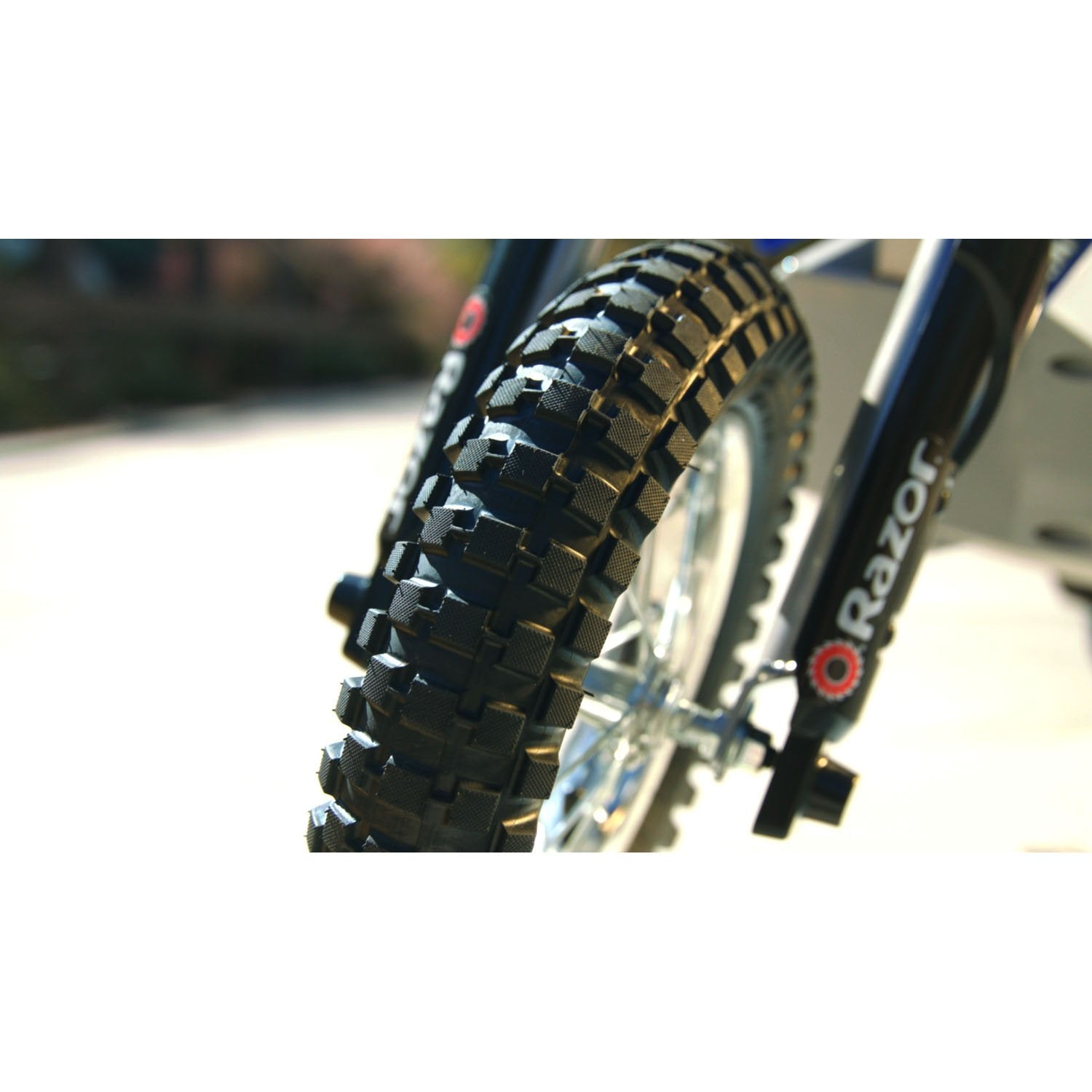 Get out in the dirt with the MX350 Electric Motocross Bike from Razor's Dirt Rocket line. The MX350 Dirt Rocket is a scaled down, electric powered motocross bike that offers younger riders a way to live out their off-road fantasies. With a high torque motor, large, knobby tires, and speeds up to 12 miles per hour, the MX350 leaves similar pocket dirt bikes in its dust.
