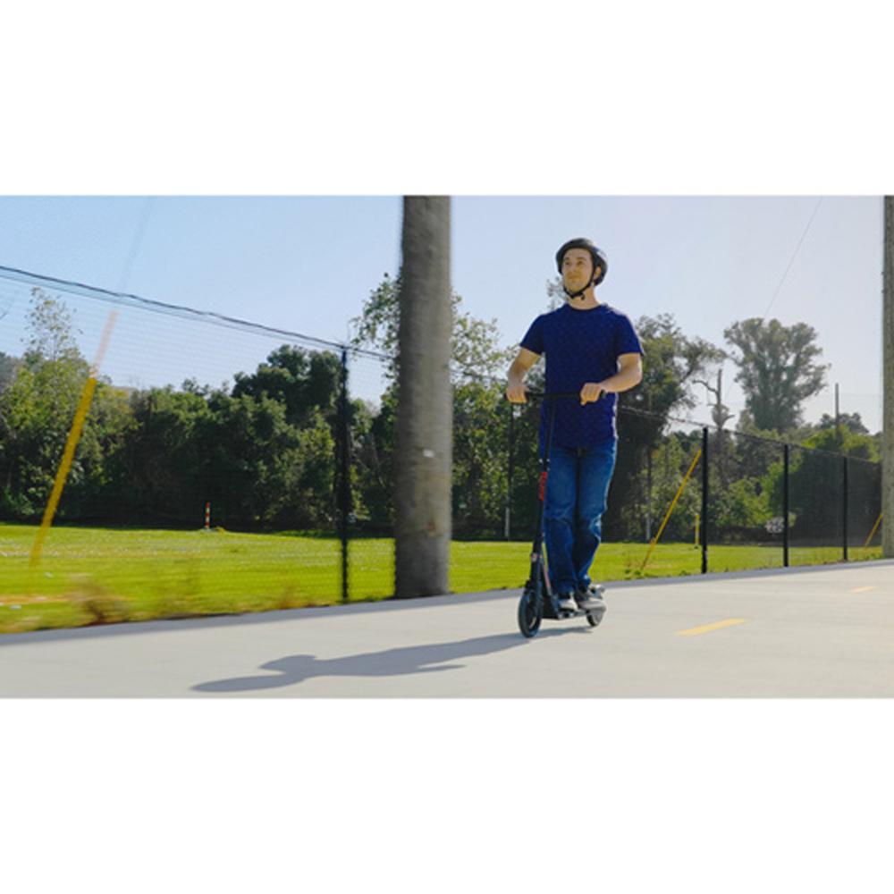 Power at your fingertips! Accelerate quickly and easily by pressing on the thumb-activated throttle putting the power of a 150-watt, high-torque, hub motor at your fingertips. Simply step on the scooter, kick off and press the throttle.