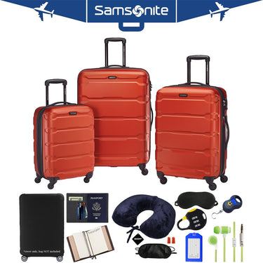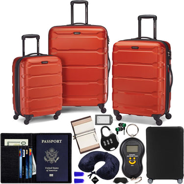 Samsonite Omni Hardside Luggage Spinner Set, Burnt Orange w/ 10pc Accessory Kit