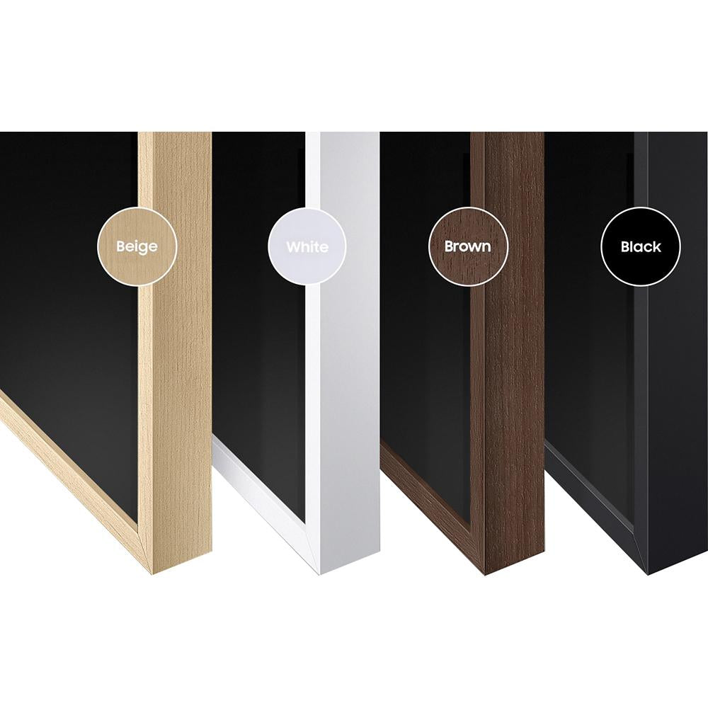 Samsung's Customizable Frame has the flexibility to fit into any home’s decor. You can choose from a white, brown, beige, or black bezel to perfectly complement your home. Each customizable Frame sold separately.