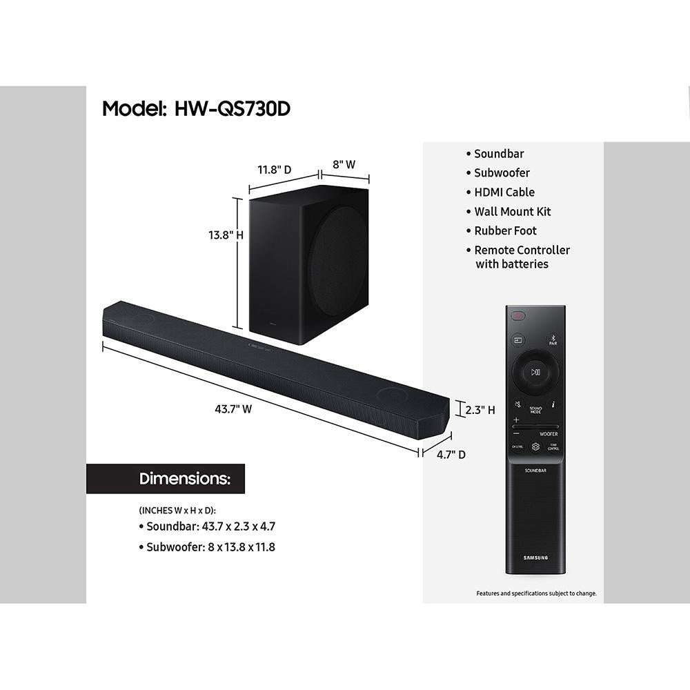 Samsung 3.1.2 ch. Wireless Dolby ATMOS Soundbar w/ Q-Symphony - HW-Q730D - Open Box