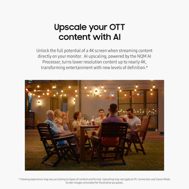 Unlock the full potential of a 4K screen when streaming content directly on your monitor. AI upscaling, powered by the NQM AI Processor, turns lower resolution content up to nearly 4K, transforming entertainment with new levels of definition