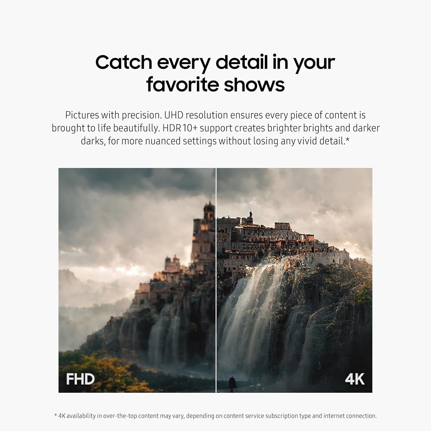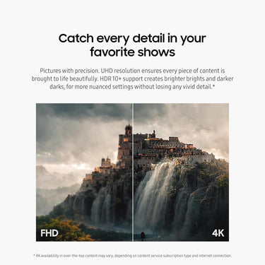 Pictures with precision. UHD resolution ensures every piece of content is brought to life beautifully. HDR 10+ support creates brighter brights and darker darks, for more nuanced settings without losing any vivid detail.