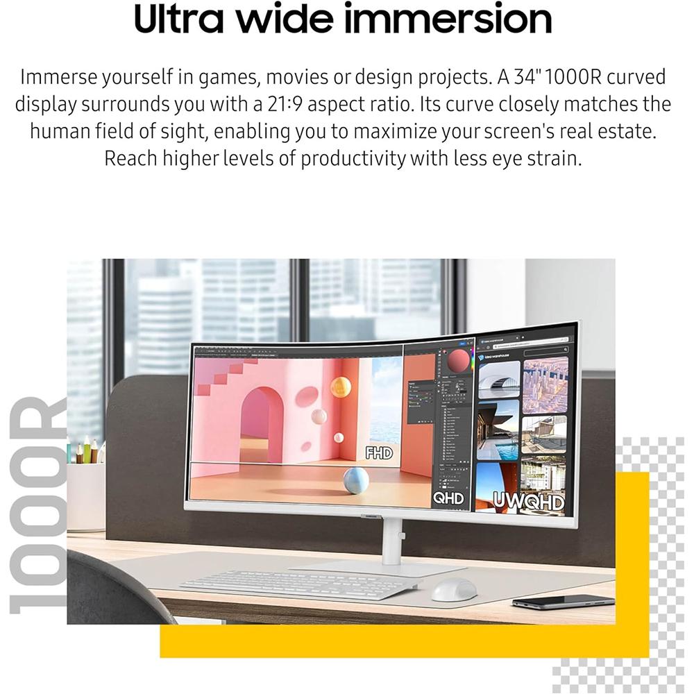 - 34" Ultra-WQHD Monitor with 1000R curved display