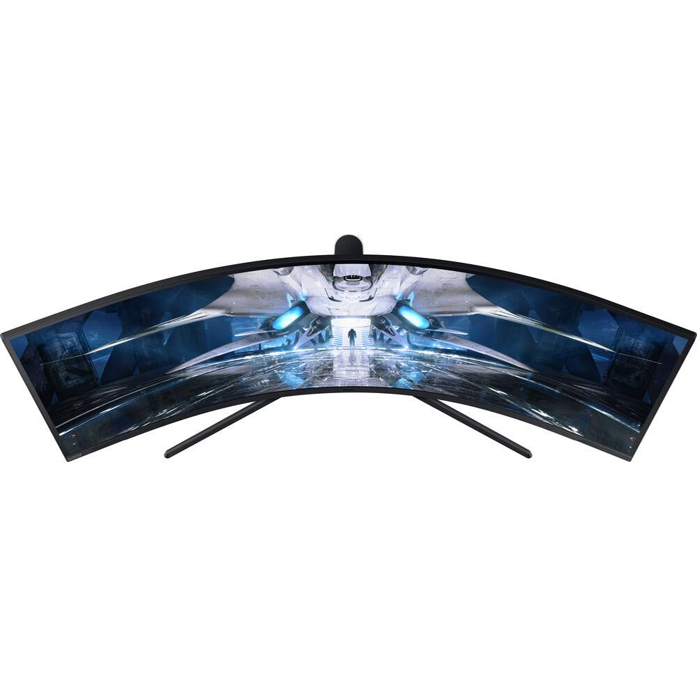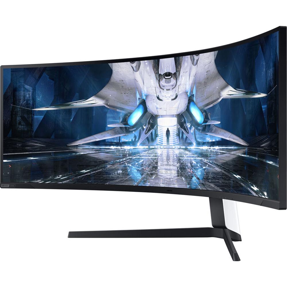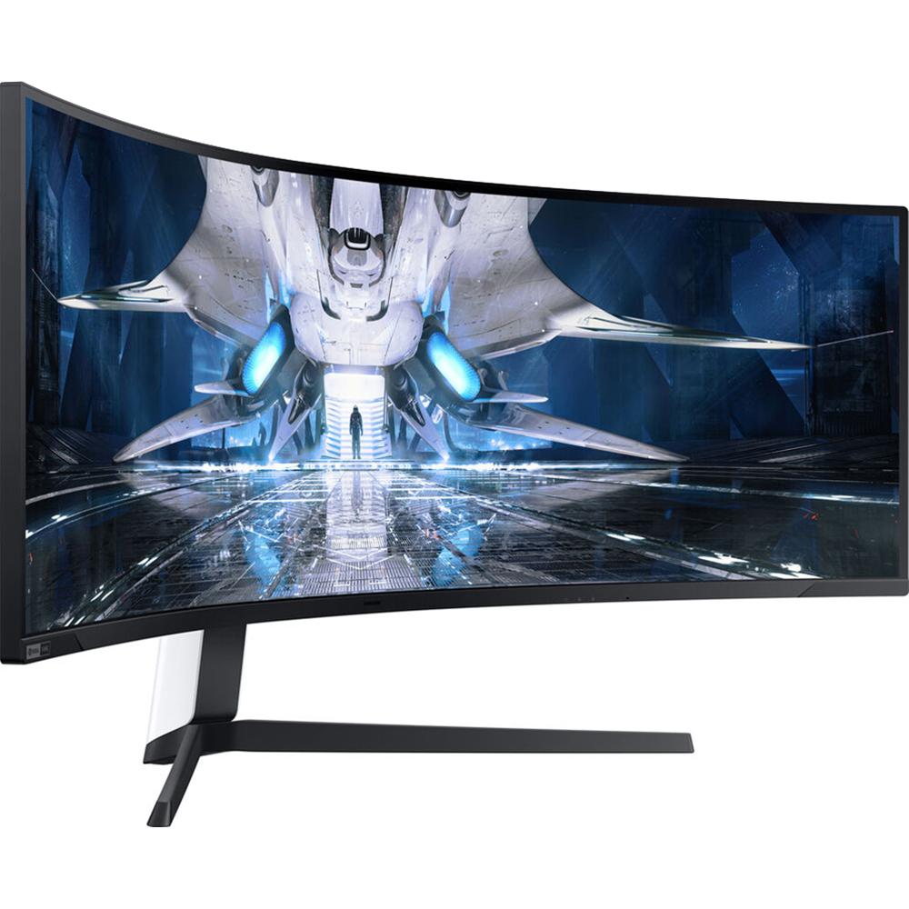 The Samsung Odyssey Neo G9 49" 32:9 Ultrawide Curved Adaptive-Sync 240 Hz HDR VA Gaming Monitor is designed for powerfully realistic gameplay. It features a super ultrawide 5120 x 1440 resolution, a 1000R curved design, and 178° horizontal and vertical viewing angles. The monitor also offers a 1,000,000:1 static contrast ratio and 2000 nits peak brightness for sharp, clear images. The Vertical Alignment (VA) panel, filled with Quantum Dot nanoparticles, delivers incredibly realistic images with high-dynamic range for bright whites and deep blacks. The monitor's pro-gaming grade 240 Hz refresh rate and 1 ms (GtG) response time help minimize motion blur, delivering smooth graphics with fast-paced action games. AMD's FreeSync Premium Pro and NVIDIA G-Sync technologies help reduce screen tearing, stuttering, and other artifacts. The monitor also offers low 2 ms input lag, bringing the game directly to peripherals for seamless immersion. The monitor is built for comfort, with wide 178° horizontal and vertical viewing angles and 400 nits of typical brightness. The adjustable stand allows for a perfect viewing angle. Additional features include Off Timer Plus, Screen Size Optimizer, Black Equalizer, Low Input Lag Mode, Refresh Rate Optimizer, Super Arena Gaming UX, and Auto Source Switch+.
