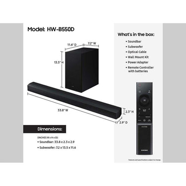 - Samsung B-series 3.1 ch. DTS Virtual:X Soundbar w/Bass Boost, HW-B550D (2024)