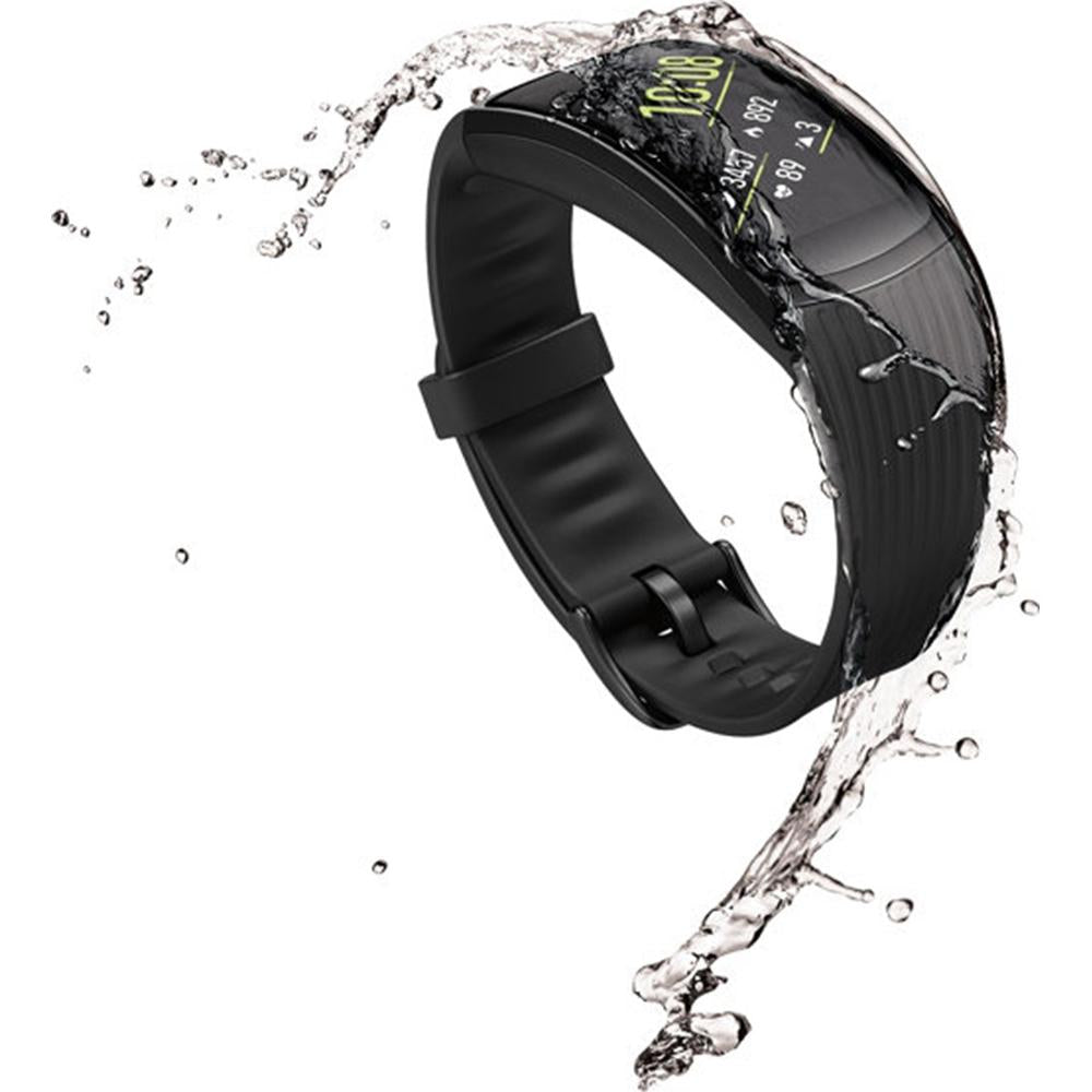 Jump in with your swim-ready Gear Fit2 Pro. Water-resistant up to fifty meters, now you can own the pool, run in the rain and recover in the shower with a device that withstands it all.