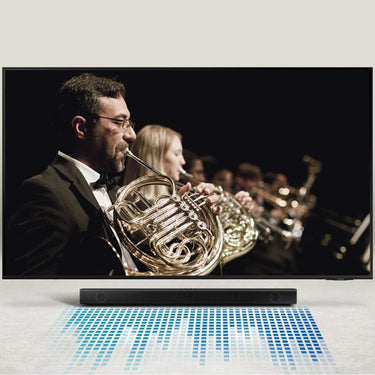 Captivating audio technology that moves the sound around you. DTS Virtual X creates spacious 3D sound, including the feeling of height through audio processing techniques. Discover deeper rich like nothing before with subwoofer included. Kick your listening experience up a notch with the subwoofer included with your Soundbar. It emphasizes bass for incredible sound that hits deeper and smoother notes — delivering theater-quality audio with your Soundbar.