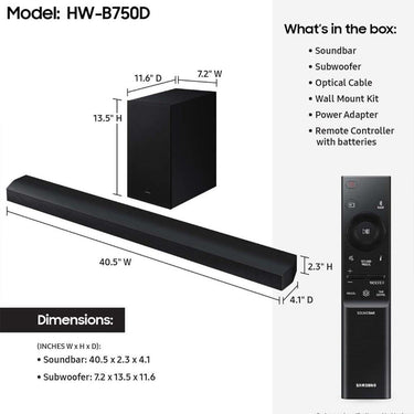 wireless subwoofer included. B750D actively adapts to on screen content, optimizing sound scene by scene.