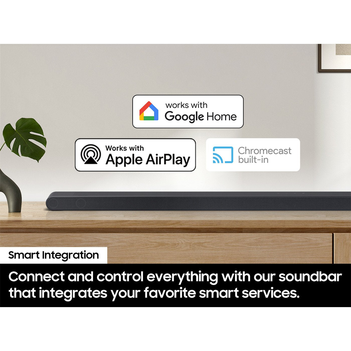 Connect your devices and control everything with this soundbar that integrates your favorite voice assistants and smart services like built-in Alexa, Chromecast, Airplay 2 and more.