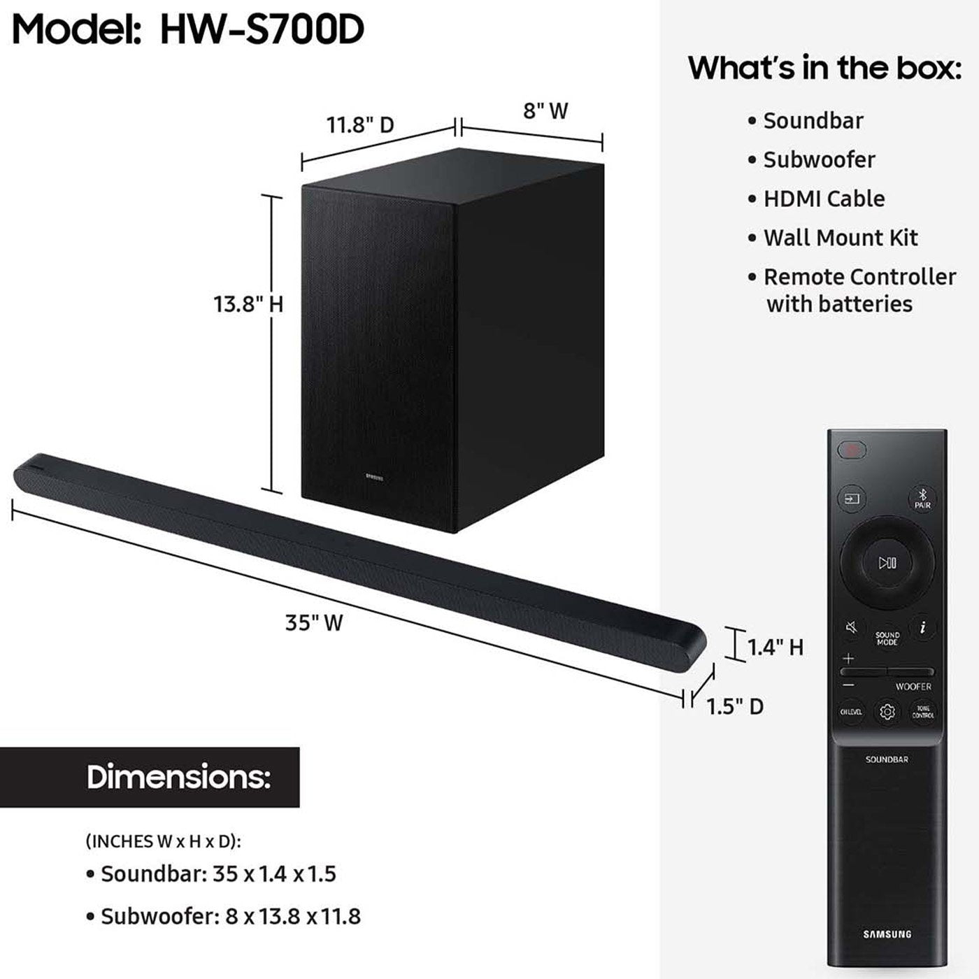 • SOUNDBAR: 35 x 1.4 x 1.5