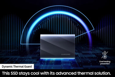 When you’re elbow-deep in a passion project, the T9 Portable SSD stays cool. Its advanced thermal solution withstands and controls heat to keep the SSD at ideal temperatures—even in heavy use.
