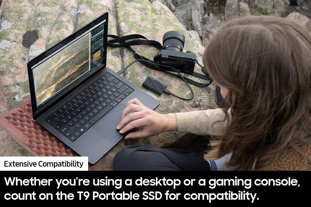 Whether you’re using a desktop, camera or a gaming console, count on the T9 Portable SSD for extensive compatibility. It’s a true team player when it comes to heavy-duty application usage or file-saving.