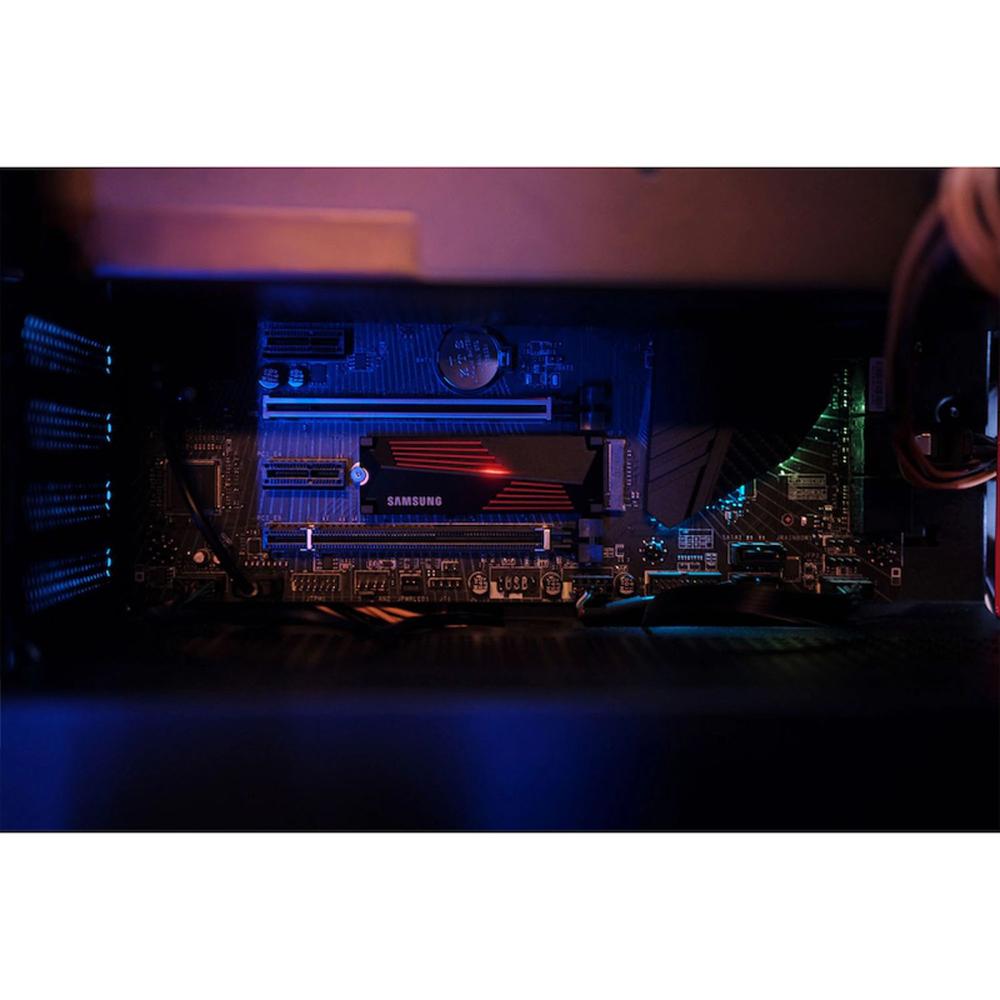 The Samsung 990 PRO Heatsink PCIe 4.0 NVMe M.2 SSD 4TB revolutionizes your gaming and computing experience with more than a 55% improvement in random performance over the 980 PRO. Achieve unparalleled read and write speeds up to 7,450/6,900 MB/s, pushing the boundaries of PCIe® 4.0 capabilities. This SSD is not just about speed; it's also about endurance. The integrated ultra-slim heatsink efficiently dissipates heat, ensuring your device operates at optimal temperatures for uninterrupted performance, making it an ideal choice for PlayStation® 5 gamers and high-performance PC users alike. With up to 4TB of storage, it offers ample space for all your digital endeavors. The 990 PRO Heatsink SSD also features power efficiency improvements and comes equipped with Samsung Magician Software for advanced drive management. Experience the pinnacle of flash memory technology from the world's leading brand since 2003, all while keeping your system cool and responsive.
