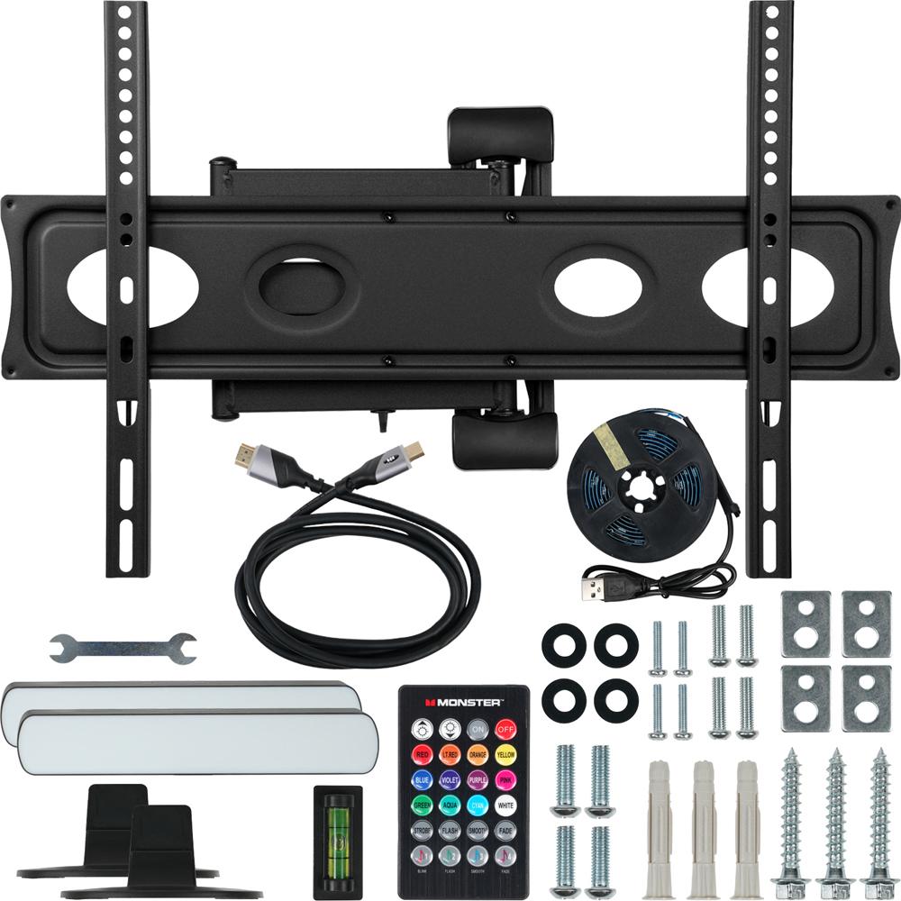 - Monster TV Full Motion Wall Mount for 32"-70" with 6 Piece Sound Reactive Lighting Kit