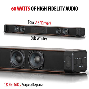 - Deco Gear 2.0 Channel Soundbar with Built-in Dual Subwoofers and Four 2.5" Drivers