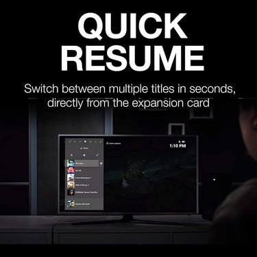Quick resume means gamers can switch between multiple titles in seconds - from either the internal SSD or the expansion card