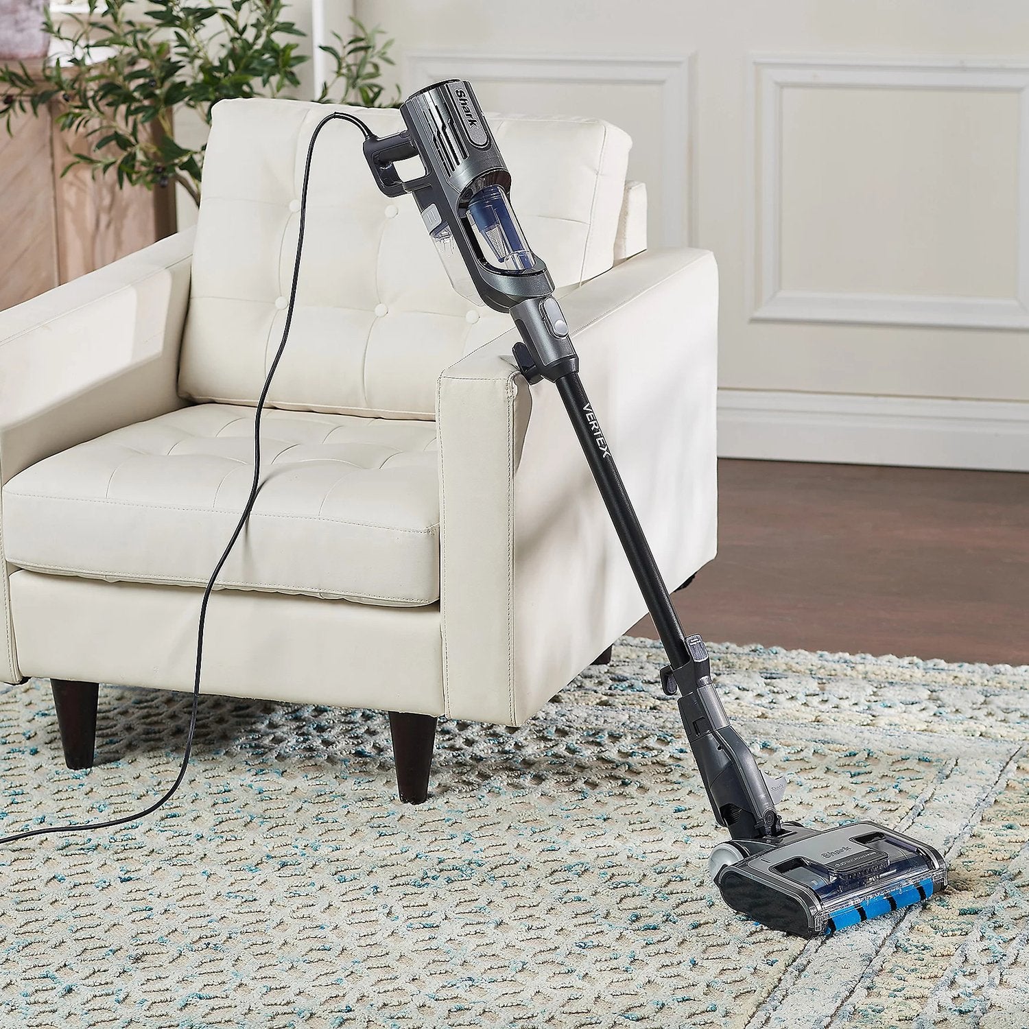 The Shark Vertex corded stick vacuum is Shark's ultimate cleaning experience. It includes DuoClean PowerFins and a two-brushroll, no-bristle system to deep-clean and pick up more in every pass - all with no hair wrap.