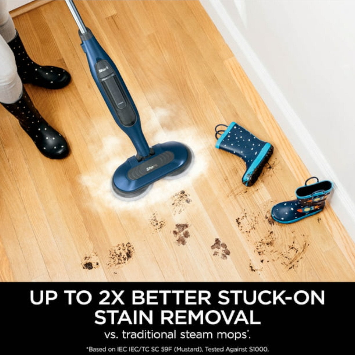 The Shark® Steam & Scrub scrubbing and sanitizing steam mop gently scrubs and sanitizes all at once. The combination of steam and rotating pads delivers up to 2x better stuck-on stain removal vs. traditional steam mops on sealed hard floors.