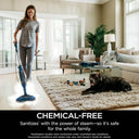 - Scrubbing and sanitizing steam mop, tough on stains and gentle on floors.