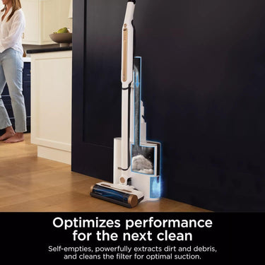 The Shark® Wandvac® Self-Empty System is the powerful, lightweight cordless vacuum that empties itself so you can ditch the dirty work. It features HyperVelocity® suction power and a PowerFins® brushroll to tackle floors & carpets with no hair wrap. And when you’re done cleaning, Wandvac® automatically empties into a HEPA-sealed base for up to 100x less dust in your home vs. Wandvac® traditional emptying.