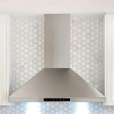 Designed with a stainless-steel finish to complement any kitchen and discreet branding, this 4-speed wall mount chimney range hood pairs beautifully with other stainless-steel appliances. The bright white LED task lighting adds an elegant finishing touch to your modern kitchen.