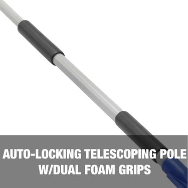 Auto-locking telescoping pole with dual foam grips adjusts from 33 in to 52 in.