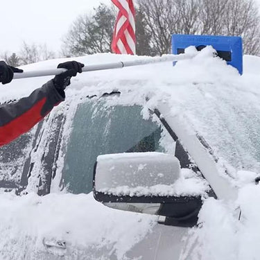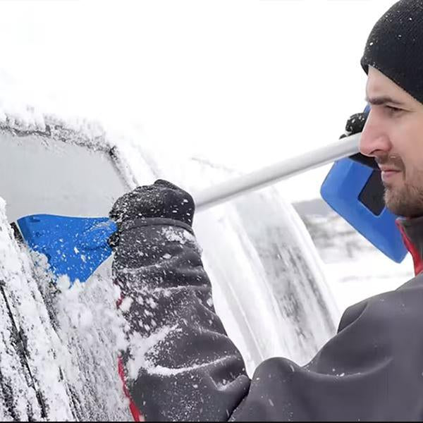 Features -Ā 33 in - 52 in Telescopic Pole, No scratch abrasive Foam Head, Ice Scraper, Emergency LED lights with Blinker Funtion
